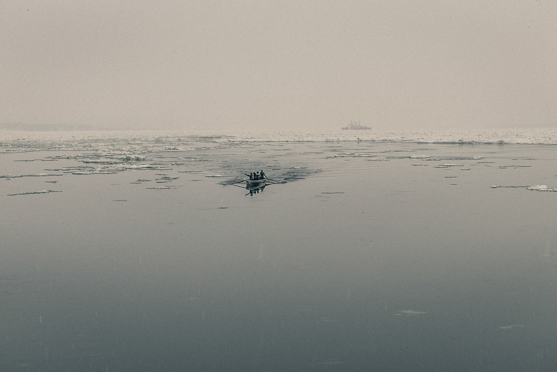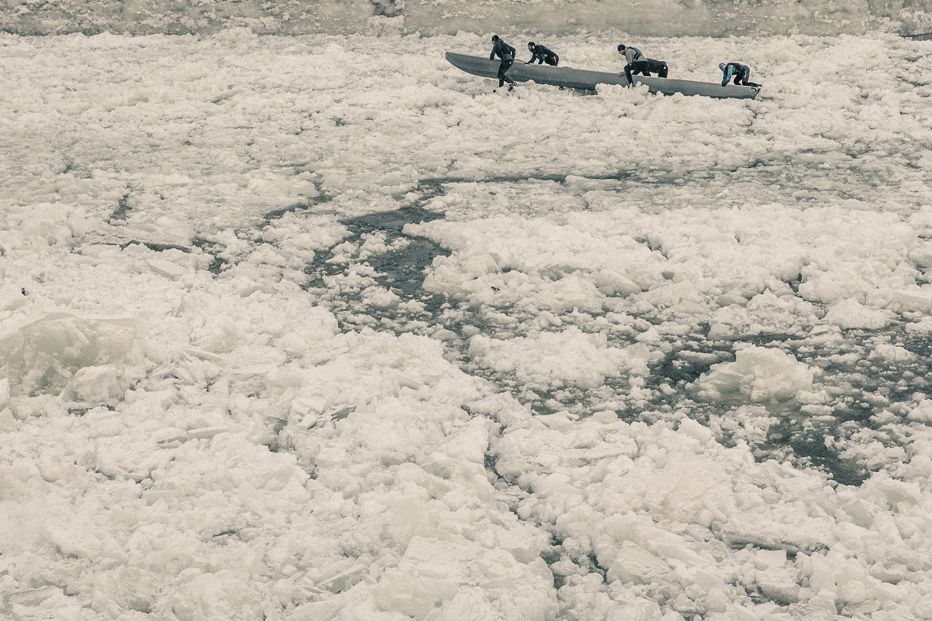 The hypnotic power of moving water sketches an imaginary world where the sun, appearing through ice blocks, reveals the memory of the river, freeing for a moment the ghosts of the great Empress.