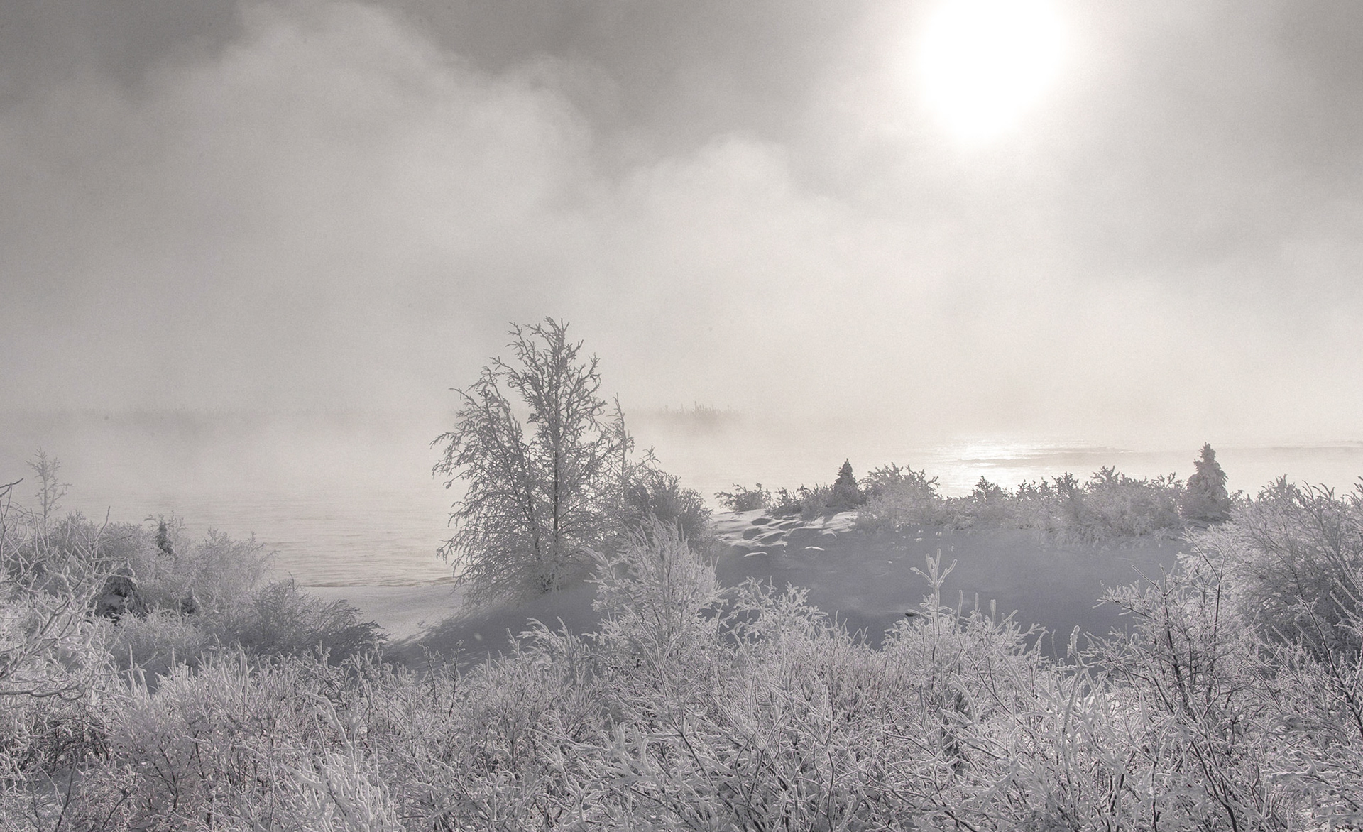 Snow has the ability to gently envelop and muffle. Stopping movement and time; muting colors, shapes and sounds.